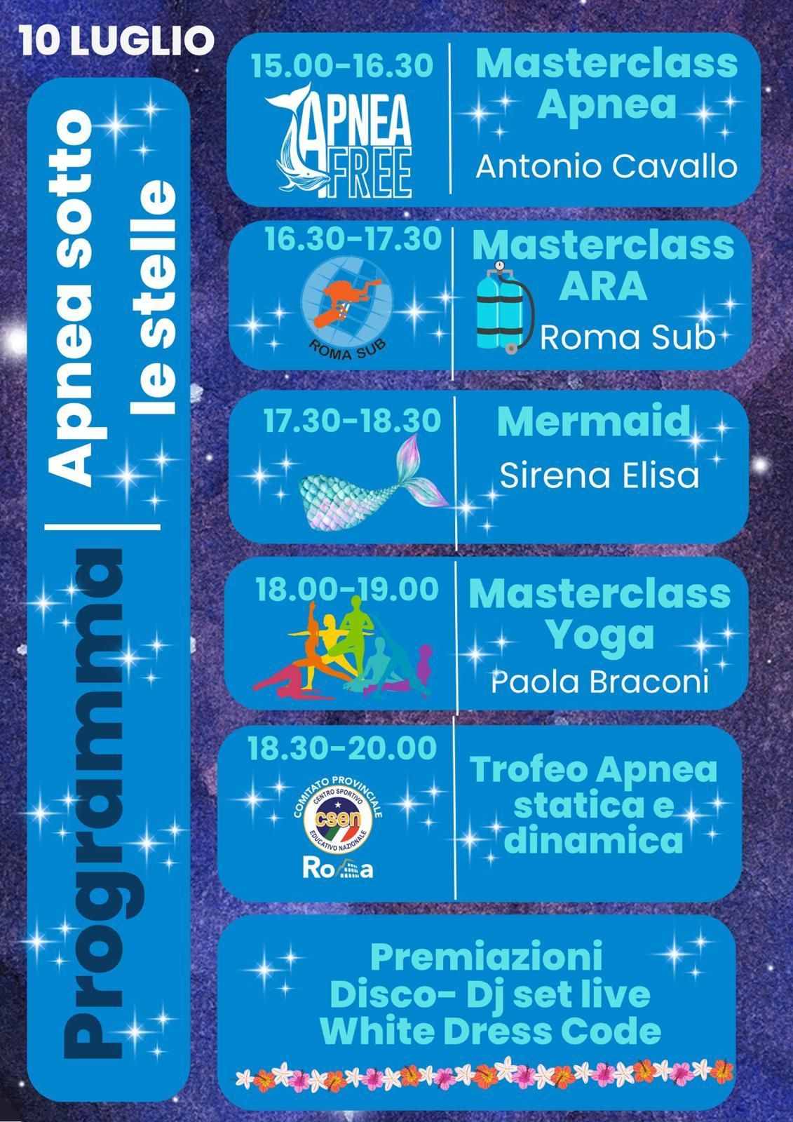 Il CSEN ROMA è lieto di annunciare la prima competizione del settore Attività subacquee, un importante passo avanti nella promozione di questa disciplina in forte crescita. L’obiettivo è la promozione e la divulgazione della didattica e della disciplina dell'apnea con intenti di aggregazione, informazione, formazione, scambio e divertimento tra atleti, amatori, e tra tutte quelle figure che circondano le discipline acquatiche.