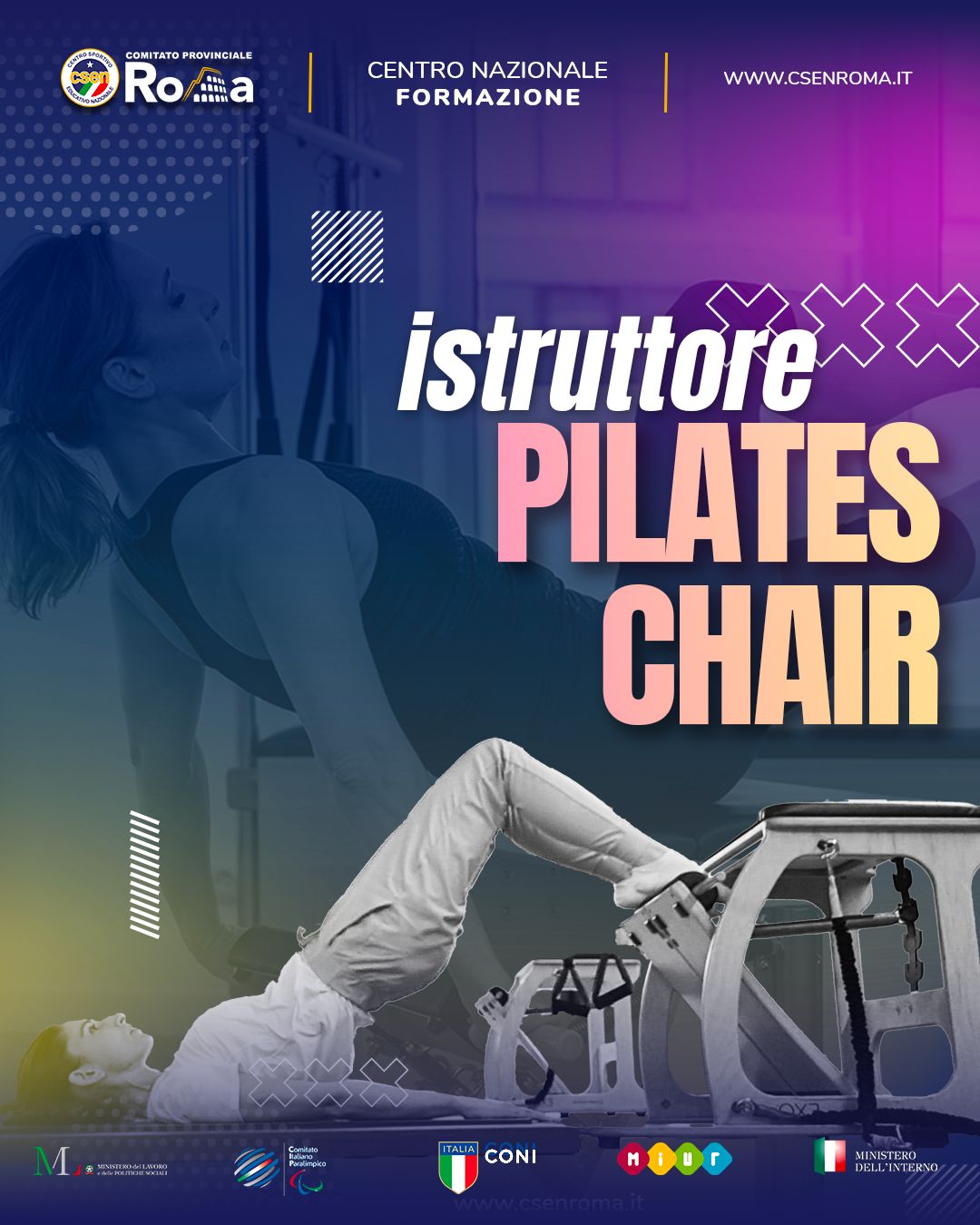 Requisiti: essere in possesso del diploma da Istruttore Pilates Matwork e Reformer