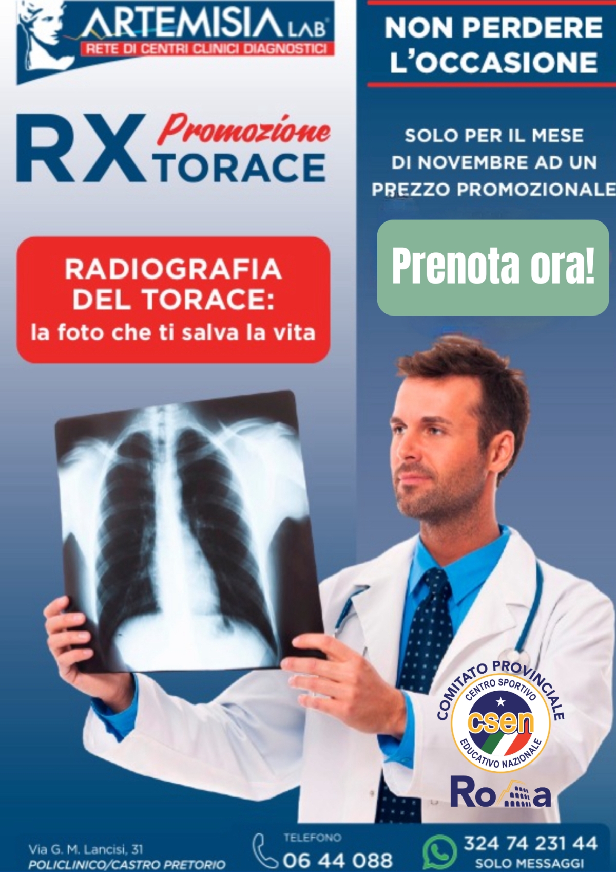 RADIOGRAFIA TORACE ad un costo promozionale con il 40% di sconto.