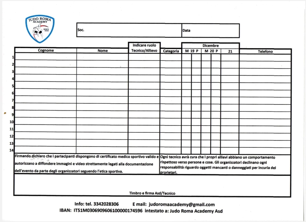 15 ALLENAMENTI TECNICI A NUMERO CHIUSO